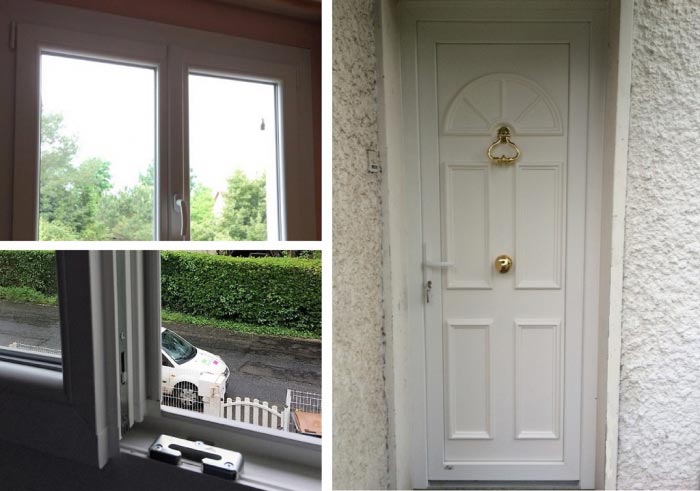 Remplacement en rénovation d'une fenêtre 2 vantaux en PVC blanc et d'une porte d'entrée en PVC blanc de la marque Gamme Baie.